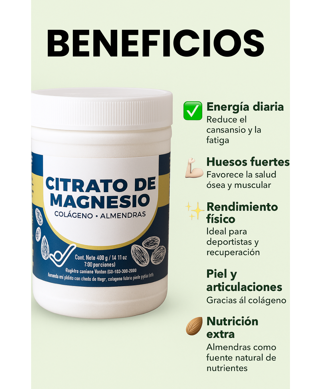 ✨ Citrato de Magnesio con Colágeno + Almendras – 400g